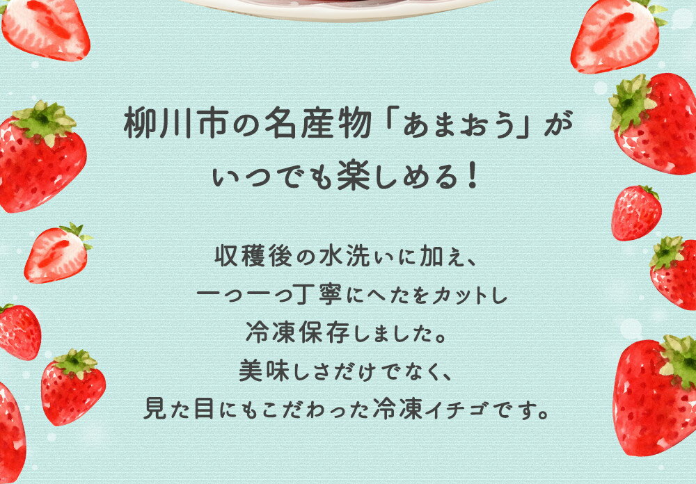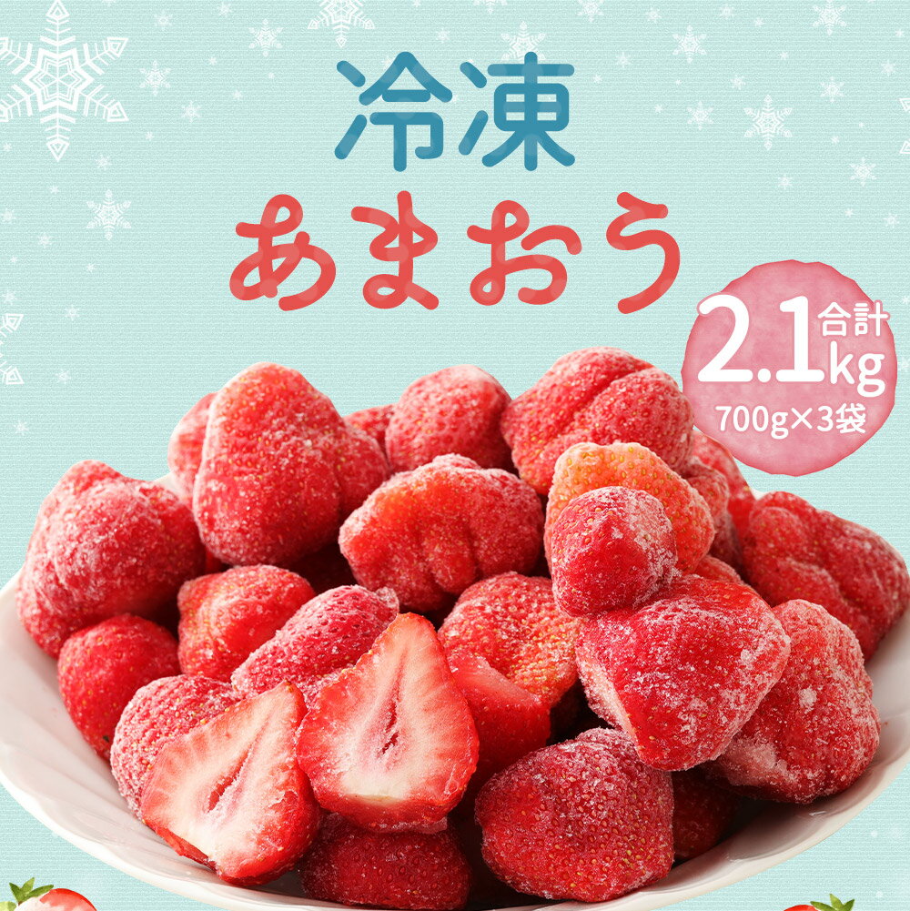 商品詳細 名称 冷凍あまおう 産地 福岡県産 内容量 700g×3袋 合計2.1kg 賞味期限 冷凍で60日 保存方法 冷凍 提供者 株式会社SoiL 商品説明 柳川市の名産物「あまおう」を通年楽しめる冷凍パックです。