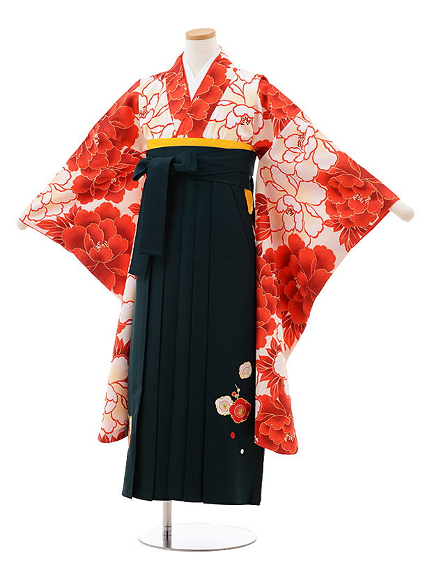 卒業式袴セット 小学生 ジュニア袴 レンタル 小学生 卒業式袴レンタル 女の子 z020 クリーム地 赤 ぼたん×グリーン袴 袴レンタル 卒業式 袴セット 卒業袴 小学校の卒業式 十三参り 1/2成人式 女児 12歳 12才 ジュニア 新品足袋プレゼント 往復送料無料【レンタル】